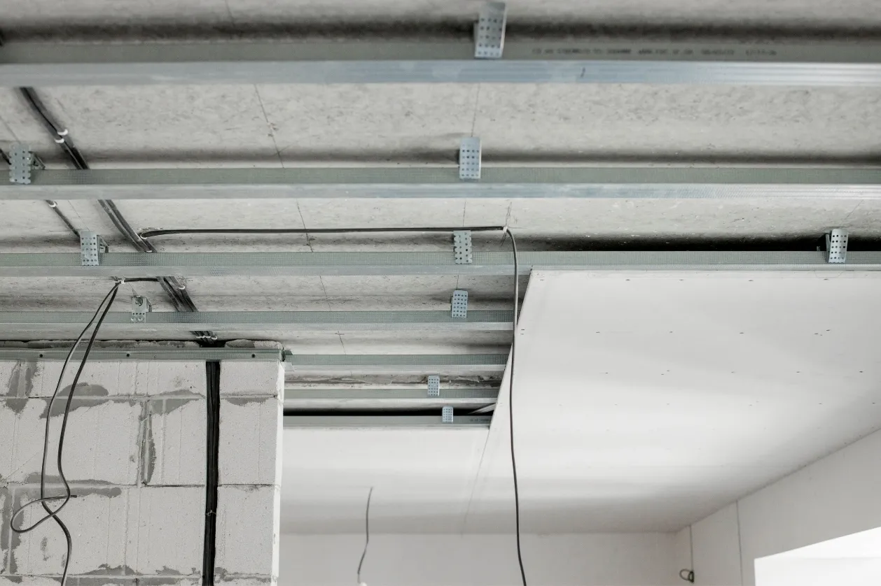 Havalandırma boruları, yangın tesisatı, elektrik kabloları veya tavandaki eğrilik, çatlak gibi inşaat kusurlarını tamamen saklayarak pürüzsüz bir yüzey sunar.
